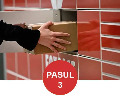 - Mergi la easybox, introdu codul PIN sau scanează codul QR de pe mail și deblochează sertarul comenzii tale.